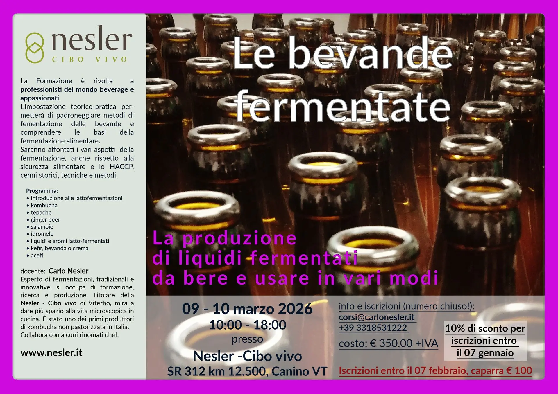 L'impostazione teorico-pratica permetterà di padroneggiare metodi di fermentazione delle bevande e comprendere le basi della fermentazione alimentare.