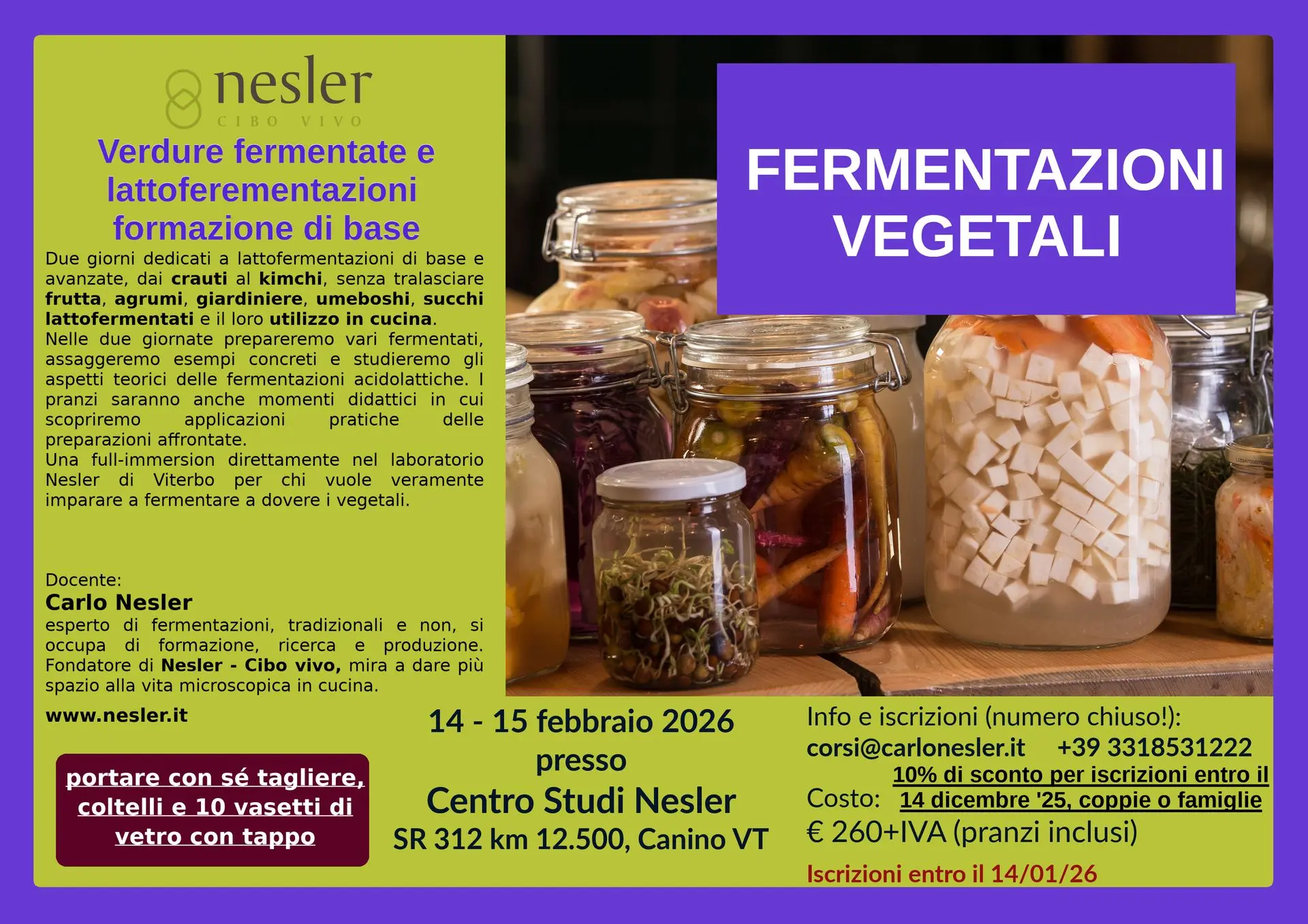 Una full-immersion direttamente nel laboratorio Nesler - Cibo vivo di Viterbo. Per chi vuole  iniziare dalle basi in maniera approfondita e completa.