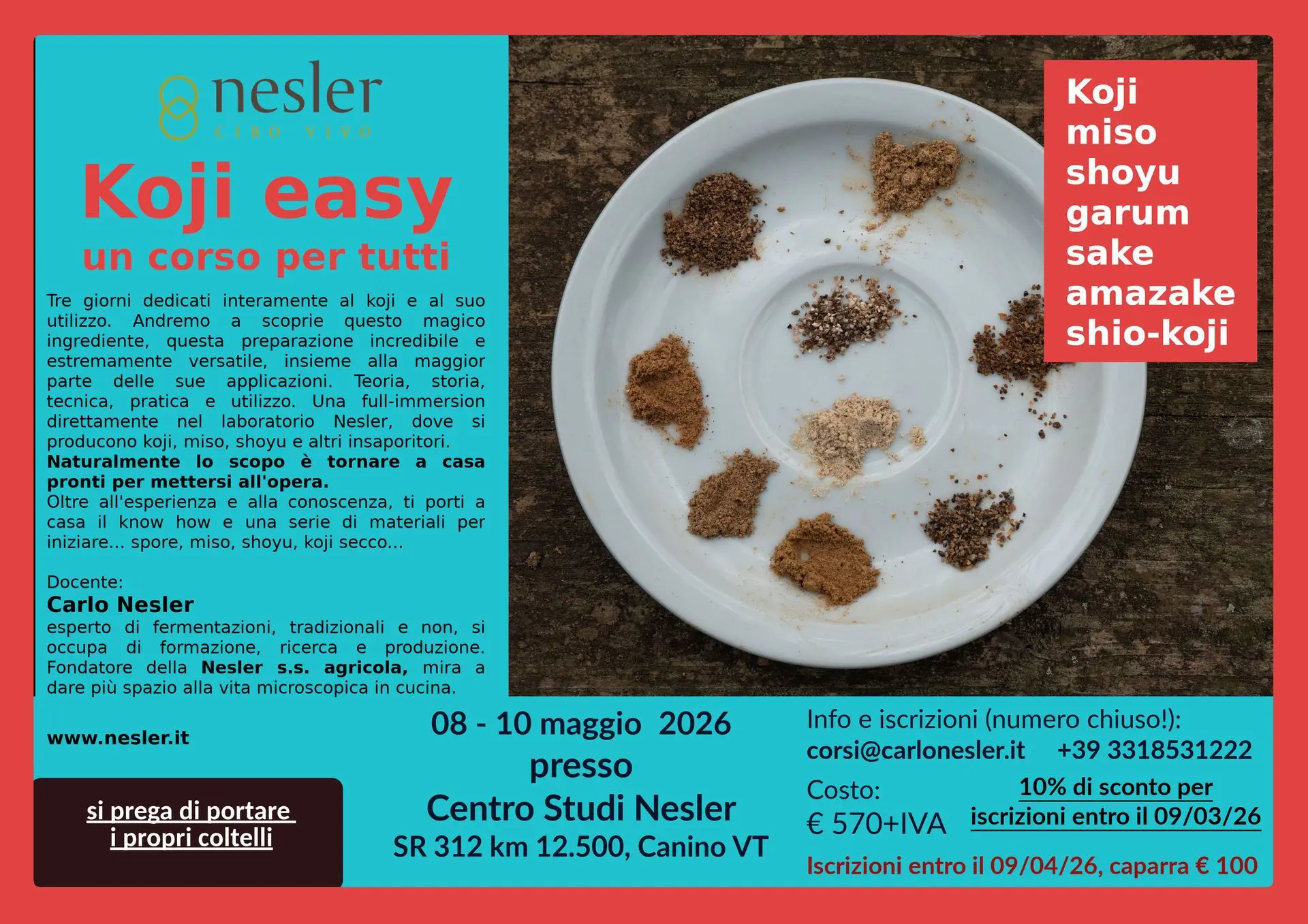 Miso, shoyu, shio-koji, amazake si basano sul koji. Finalmente questo corso ti permetterà di avvicinarti alla produzione e all'utilizzo del koji.